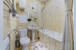 В апартаментах установлены удобная двуспальная кровать, которая дополняются раскладывающимся диваном и шкафом. В каждой из квартир есть современный кухонный гарнитур под единую столешницу, для принятия пищи обеденная зона со столом и четырьмя стульями. Санузел совмещенный уложенный плиткой с душевой кабиной.
