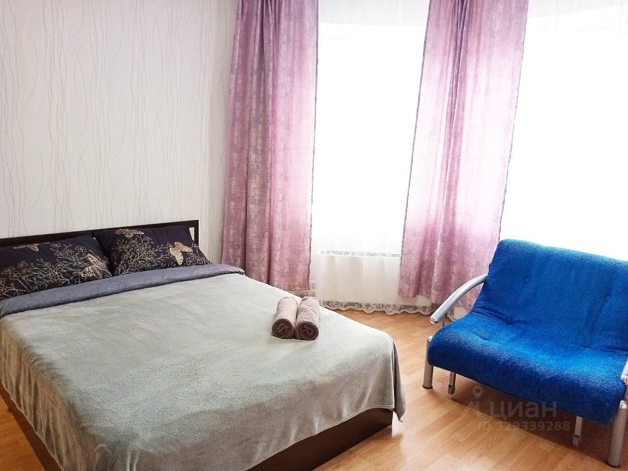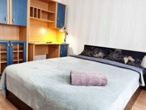 Квартира укомплектованна всей необходимой мебелью и техникой: двуспальная кровать, кресло, письменный стол, большой шкаф, зеркало, утюг,фен, гладильная доска, стиральная машина,плита,чайник,посуда,телевизор, микроволновка, полотенца и постельное бельё!