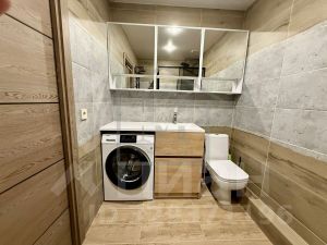Санузел совмещенный, оснащен душевой кабиной и стиральной машиной.