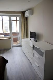 В квартире есть все необходимое для комфортного проживания: кондиционер, холодильник, телевизор и стиральная машина. Мебель расположена как в комнате, так и на кухне, поэтому можно сразу заселиться без лишних хлопот. Санузел совмещенный, оборудован ванной. Также имеется балкон.