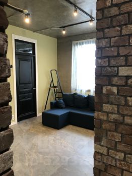 Кухня-гостиная (20 кв.м) - оборудована лаконичной кухней с кованными элементами, диваном, ТВ дисплеем (диагональ 55 дюймов) - огромное пространство для жизни в ритме города и отдыха.