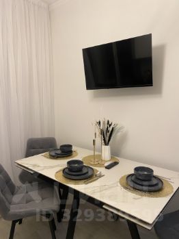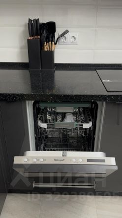 На кухне вся техника новая, холодильник, посудомоечная машина, плита, вытяжка, встроенная микроволновая печь и духовой шкаф, телевизор, большой раздвижной стол из керамогранита, стулья с поворотным механизмом. Вся кухонная утварь тоже новая.
