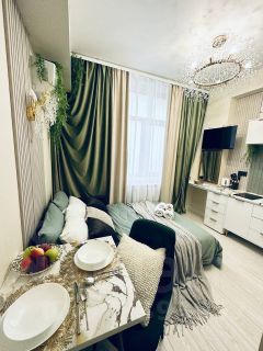 Студия расположена в кирпичном сталинском доме в окружении вековых деревьев. Отдельный вход в апарт-комплекс, гарантирует приватность и удобство. С первых шагов вас встречает стильная входная группа: лаконичные линии, продуманное освещение и элегантные детали создают атмосферу премиального жилья.