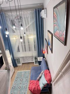 В студии есть двуспальная кровать и диван с качественным постельным бельём - идеальное решение для семейного отдыха или проживания компании.