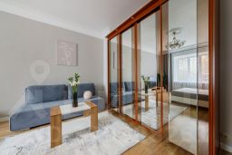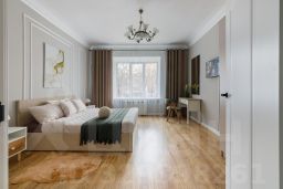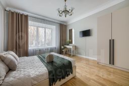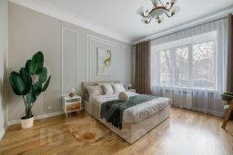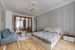 Красивая и просторная двухкомнатная квартира. В зале большой двуспальный угловой раскладывающийся диван, второй двуспальный раздвигающийся диван, платяной зеркальный шкаф во всю стену, телевизор с большой диагональю на тумбе. В спальне двуспальная кровать, большой шкаф для одежды, комод и телевизор.