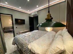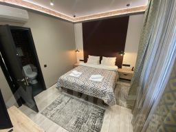 Спальная комната оборудована двуспальной кроватью с высококачественным матрасом, который гарантирует вам комфортный и крепкий сон. Добавлены мягкие подушки и уютное одеяло, чтобы ваше пребывание было максимально приятным. Для вашего удобства в спальной комнате также размещён второй санузел, что значительно упрощает утренние процедуры и помогает избежать очередей. В дополнение к этому в ванной комнате установлена современная душевая кабина, обеспечивающая освежающие моменты уединения.