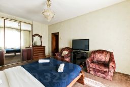 Удобства: квартира с евро-ремонтом обставлена качественной мебелью. В гостиной — большой диван-кровать, в спальне — удобная кровать с ортопедическим матрасом. Санузел раздельный. Уютная кухня со всем, что может понадобиться для сервировки стола и приготовления вкусных блюд.