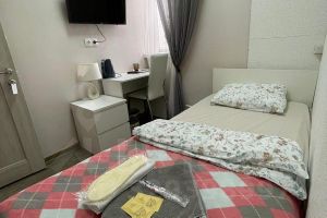 Одноместный номер с одной односпальной кроватью. В номере для гостей имеется небольшой столик, тумбочка, телевизор.