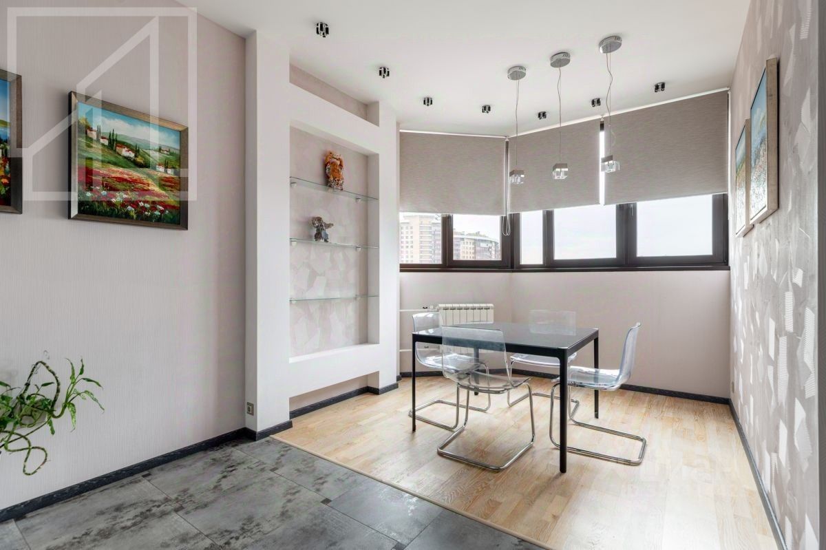 Планировка: просторная кухня-гостиная с обеденной зоной, спальня, жилая комната (можно использовать как спальню или кабинет), два совмещённых санузла с ванной и душевой кабиной, гардеробная комната, прихожая. Квартира меблирована, укомплектована необходимой бытовой техникой. Качественный современный ремонт.