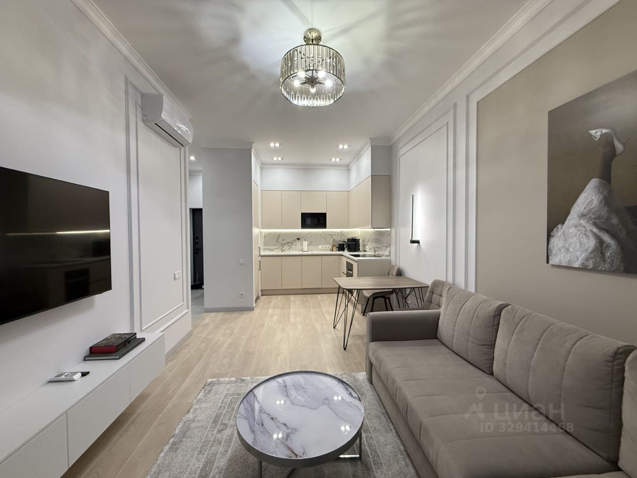 Современная и удобная планировка - кухня-гостиная и спальня.