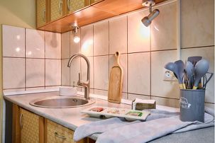 • Полностью оборудованная кухня: плита, посуда, микроволновка, чайник, холодильник.