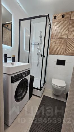 санузел оснащен душевой кабиной со слайд-двереми, унитаз с инсталяцией