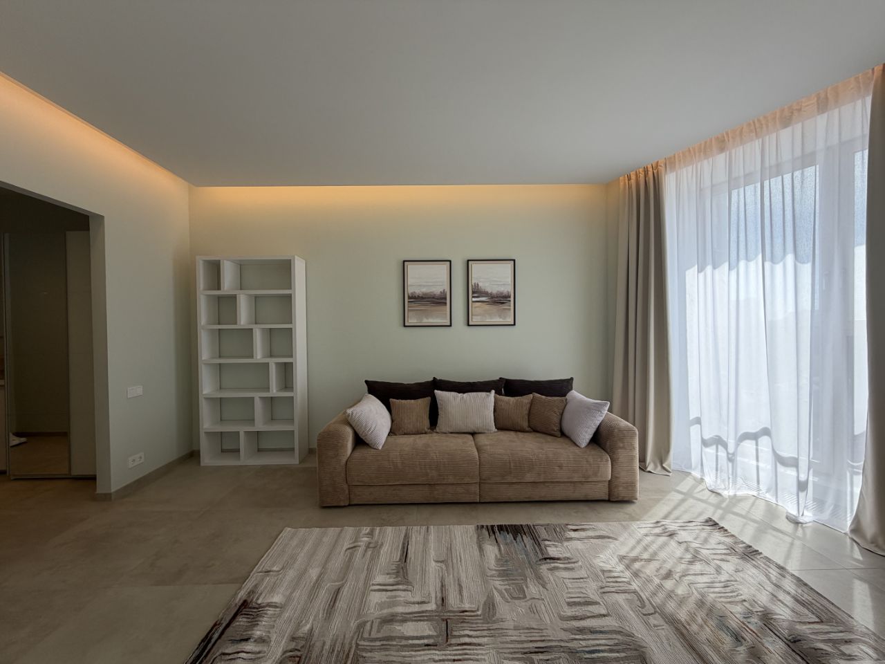 Гостиная: раскладной диван. Телевизор. ТВ-тумба. Кресло. Кондиционер.