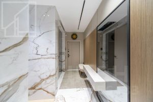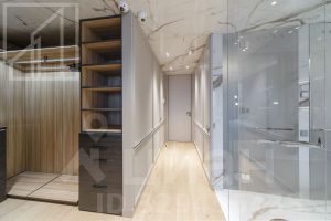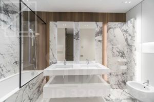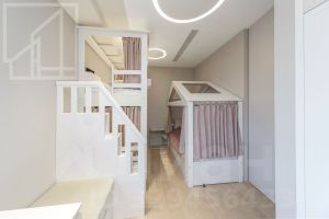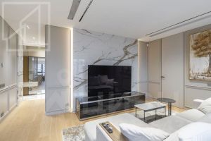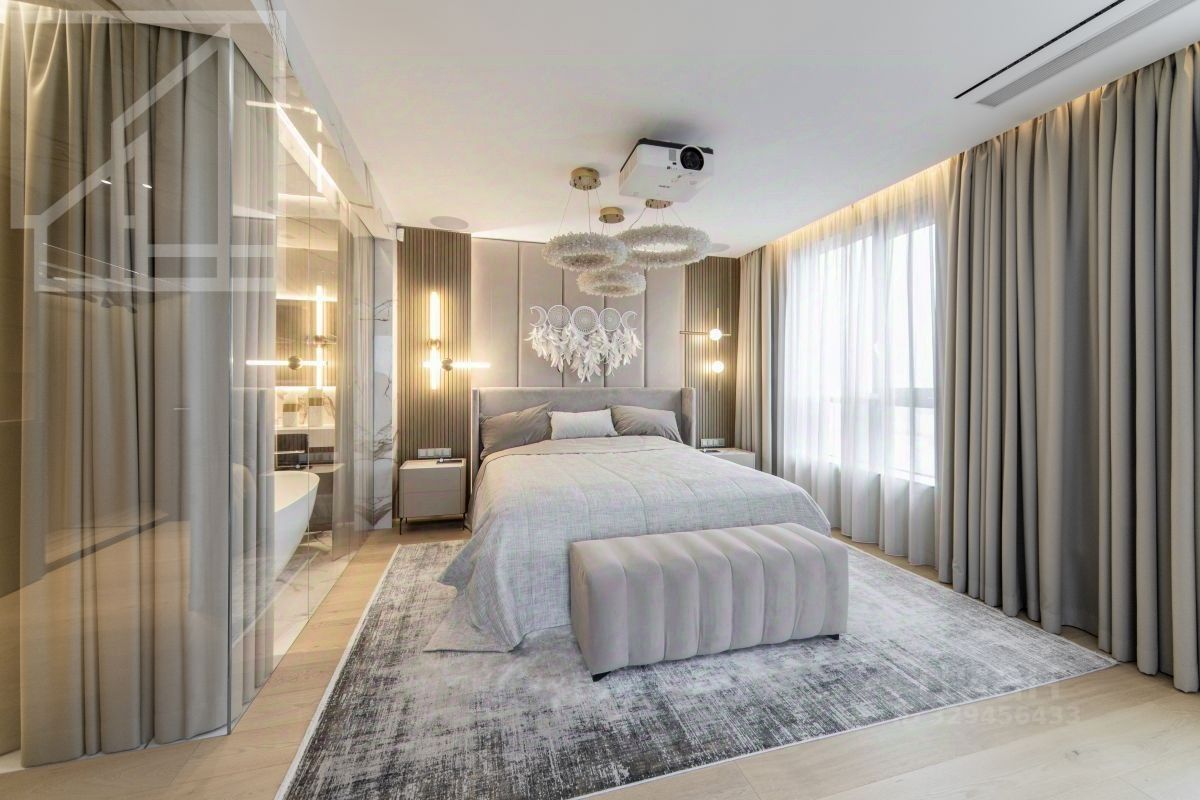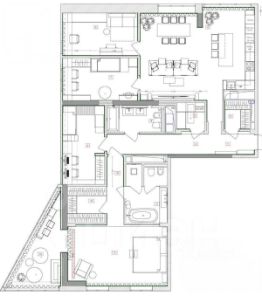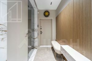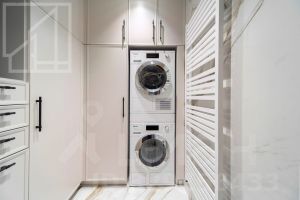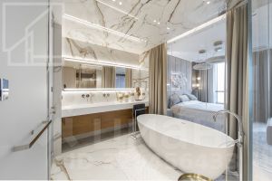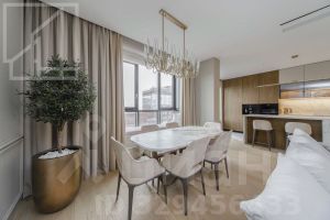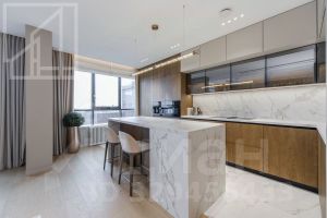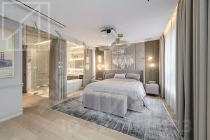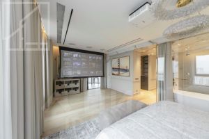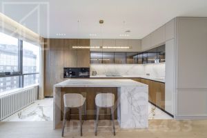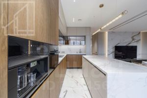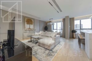 Планировка: кухня-гостиная, мастер-спальня со своим санузлом и гардеробной, 2 детские, кабинет, просторная лоджия с панорамным остеклением, гардеробная, постирочная, второй санузел. Мебель изготовлена по индивидуальному заказу. Квартира оснащена премиальной техникой Miele.