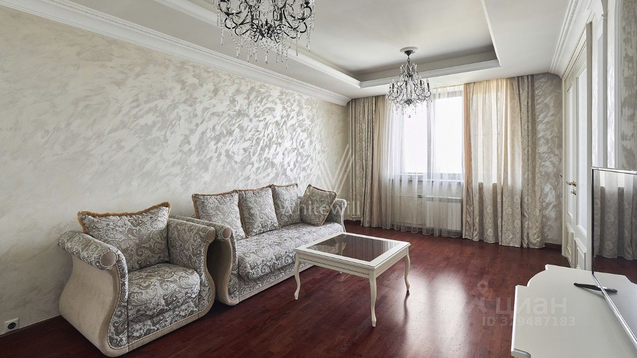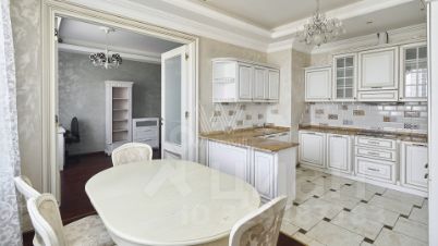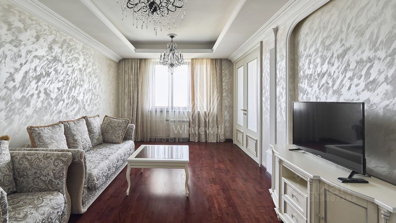 Планировка: просторная гостиная, кухня, 3 спальни, 2 ванных комнаты, 2 гардеробных, холл. Квартира укомплектована мягкой мебелью, кухня оснащена встроенной техникой, обеденная зона на 6 персон. Ванной комнате установлено джакузи.