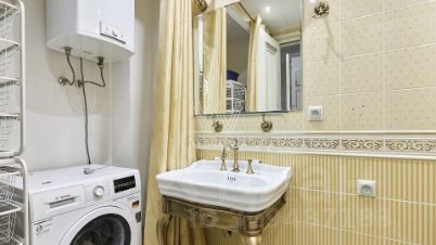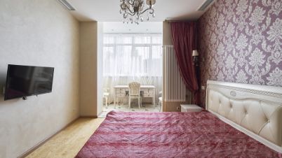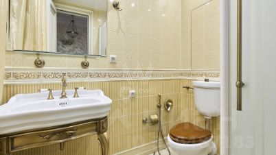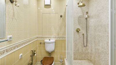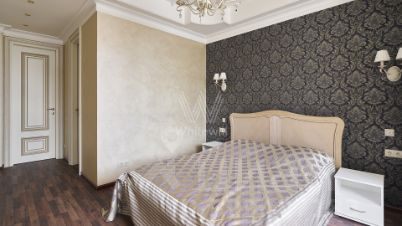 Бонус партнёрам 50%. Квартира с 2-мя спальнями общей площадью 150 м² на 9 этаже дома. Выполнена дизайнерская отделка. Интерьер оформлен в классическом стиле. На полу паркетная доска коричневого цвета, на стенах обои и венецианская штукатурка.