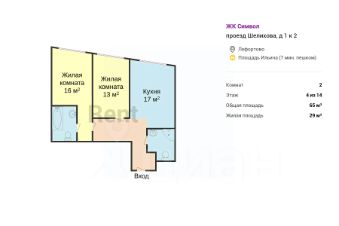 Общая площадь — 65 м²