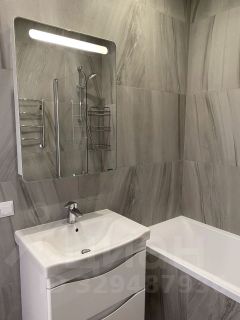 Совмещённый санузел с комфортной ванной, раковиной и зеркалом с подсветкой