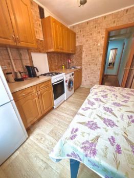 В квартире есть все необходимое для комфортного проживания. Выполнен косметический ремонт, в комнатах установлена мебель, есть холодильник, телевизор и стиральная машина. Окна выходят во двор, обеспечивая тишину и спокойствие. Ванная комната оборудована душевой кабиной. Для связи с внешним миром предусмотрены интернет и телефон. На балконе можно наслаждаться утренним кофе, а мусоропровод избавит от лишних хлопот.