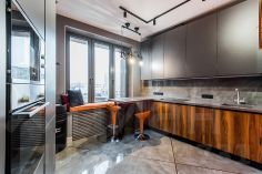 В квартире сделан уникальный дизайнерский ремонт, выполненный в многокомпонентных тонах кофейно-молочного и светлого цвета, из дорогих материалов.