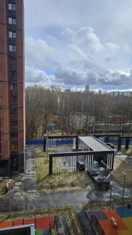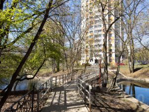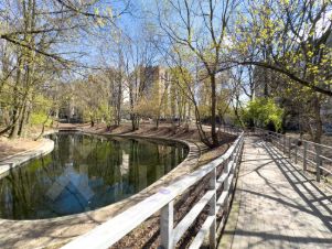 Окна выходят с одной стороны во двор, а с другой - на парковую зону с прудами.