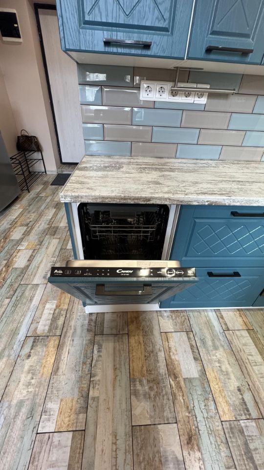 Техника: посудомоечная машина, плита, вытяжка, стиральная машинка, духовой шкаф, вытяжка, холодильник.
