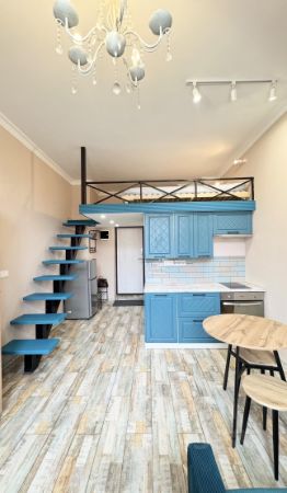 Стильная студия, трансформированная в двухуровневые апартаменты с авторским дизайном.