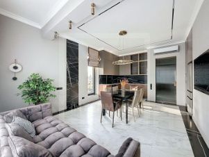 В квартире: С мебелью, М/место в подземном паркинге, Посудомоечная машина, Стиральная машина, Сушильная машина, Бойлер, Душевая кабина, Теплые полы, Спутниковое/кабельное телевидение, Кондиционер, Видеонаблюдение, Охрана, Интернет, Балкон, Видовая квартира, Можно с детьми, Можно с животными, Европланировка, Ванна, Кондиционер, Гардеробная комната, Лифт, Ремонт - дизайнерский, Кухонная мебель, Окна на улицу, Окна во двор