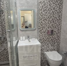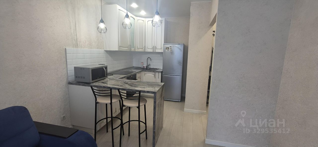В квартире сделан современный евроремонт. Просторная комната и кухня обставлены всем необходимым: на кухне и в комнате есть мебель. Среди техники: кондиционер, холодильник, телевизор и стиральная машина. Ванная комната оснащена душевой кабиной и совмещена с санузлом.