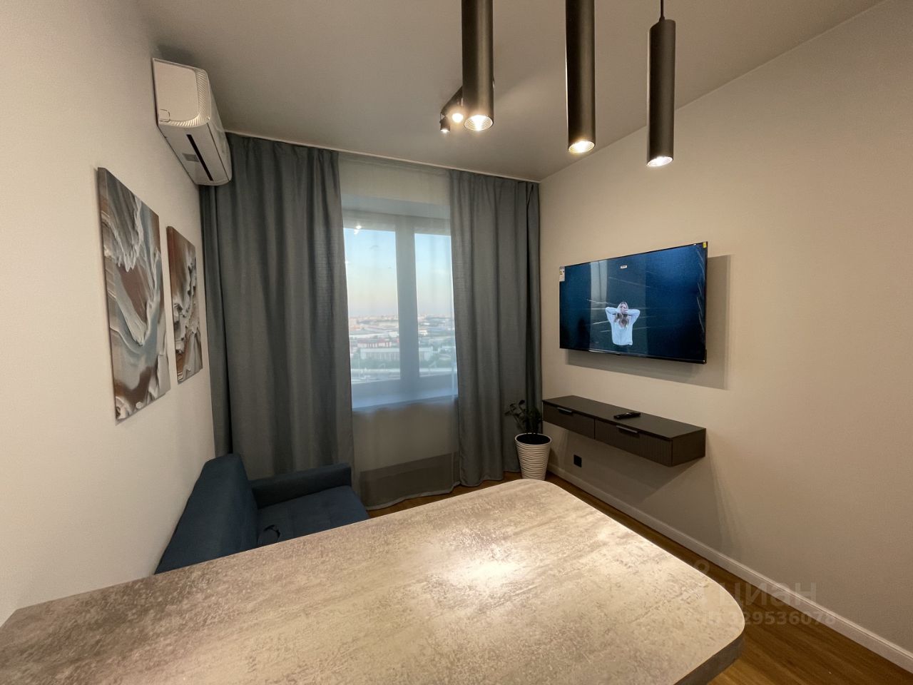 В квартире выполнен дизайнерский ремонт. Здесь есть всё необходимое для комфортной жизни: кондиционер, холодильник, посудомоечная машина, стиральная машина и телевизор. Мебель присутствует как на кухне, так и в комнате. Санузел совмещённый, оборудован современной душевой кабиной. Окна выходят во двор, поэтому шум города не будет вас беспокоить.