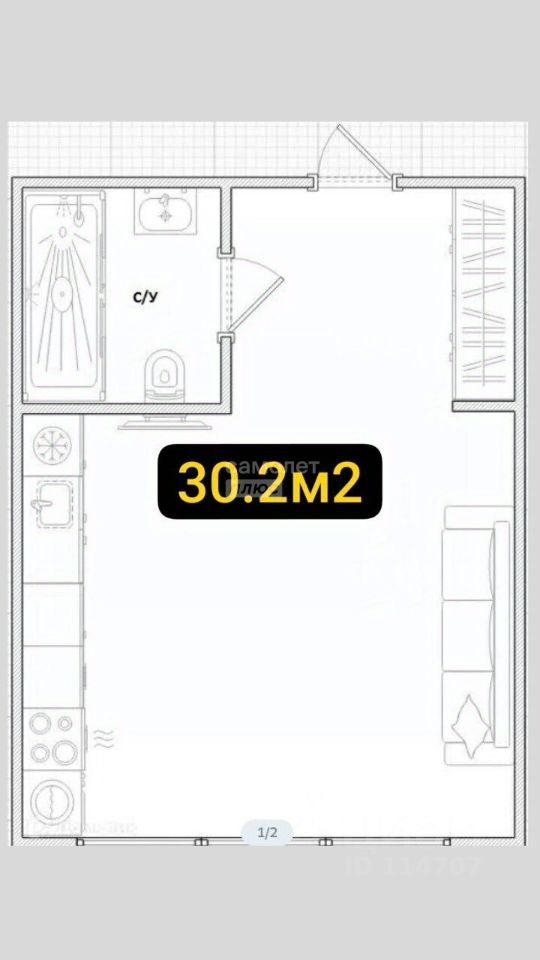 Арт. 135341759 Сдается студия на длительный срок в ЖК Символ (ЮВАО, Лефортово)