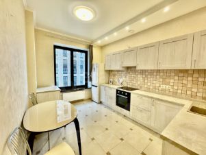 Ремонт выполнен с использованием качественных материалов, а вся необходимая бытовая техника уже установлена и готова к использованию - посудомоечная машина, кондиционеры, сплит система, духовой шкаф, стиральная машина, телевизор, паровая система ухода за вещами, мебель для комфортного проживания.
