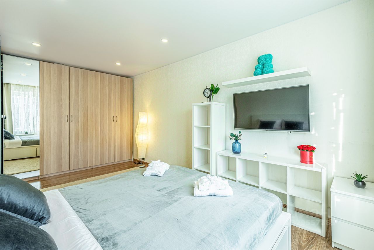 - Вся бытовая техника: посудомоечная машина, стиральная машина, микроволновка, индукционная плита, кондиционер, телевизор со смарт-тв, высокоскоростной интернет
