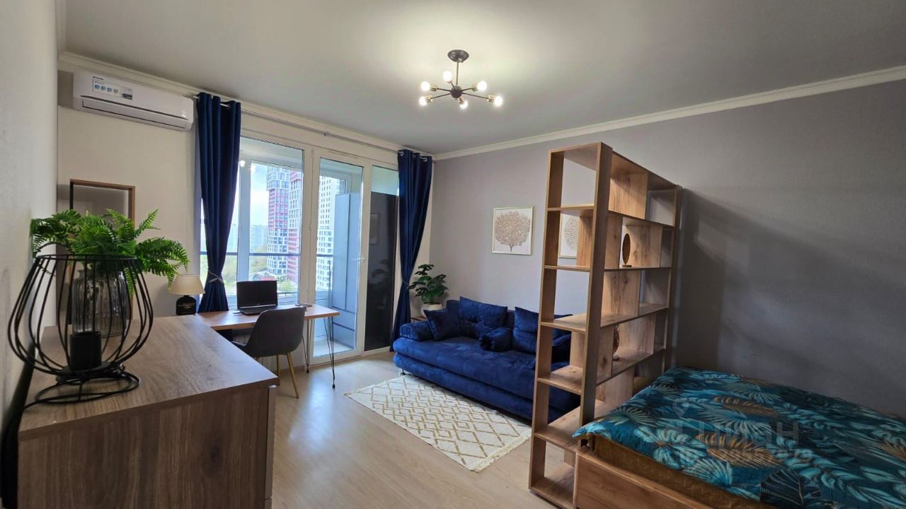36 м², 14 этаж. Панорамный вид на зелёный парк и долину реки Сетунь.