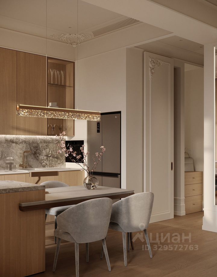 Кухня полностью оборудована современной бытовой техникой: варочная панель, духовой шкаф, холодильник, посудомоечная машина, микроволновка, кондиционер, водонагреватель, телевизор, проведены WiFi и телевидение. В апартаменте есть отдельная гардеробная, стиральная и сушильная машины, постельное бельё, полотенца и вся необходимая хозяйственная утварь — можно заехать с одним чемоданом. Санузел совмещённый, в отделке использованы качественные материалы, всё в идеальном состоянии