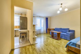 Сдается посуточно . Чудо вариант . Прекрасная квартира в центре столицы .Только что , сделана косметика . Вся необходимая мебель и бытовая техника : двуспальная кровать , большой раскладной диван , трехстворчатый шкаф с большим зеркалом , стеллаж , журнальный столик , жидкокристаллический телевизор , стиральная машина автомат , холодильник , утюг . Кухня встроенная . Пол : в комнате - ламинат , на кухне - плитка ,окна - стеклопакеты Спутниковое телевидение, безлимитный интернет . Окна во двор . Идеальная чистота . От метро - 50 метров. Добро пожаловать . Звоните .
