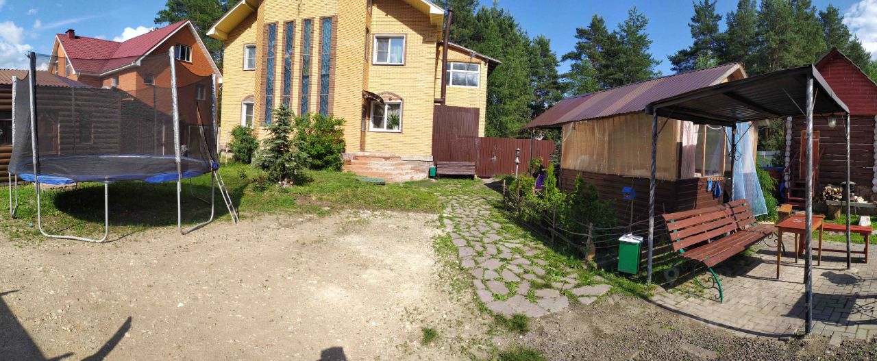 Вид из окон - сосновый лес. На участке беседка, мангал, баня, купель, песочница, качели, парковка