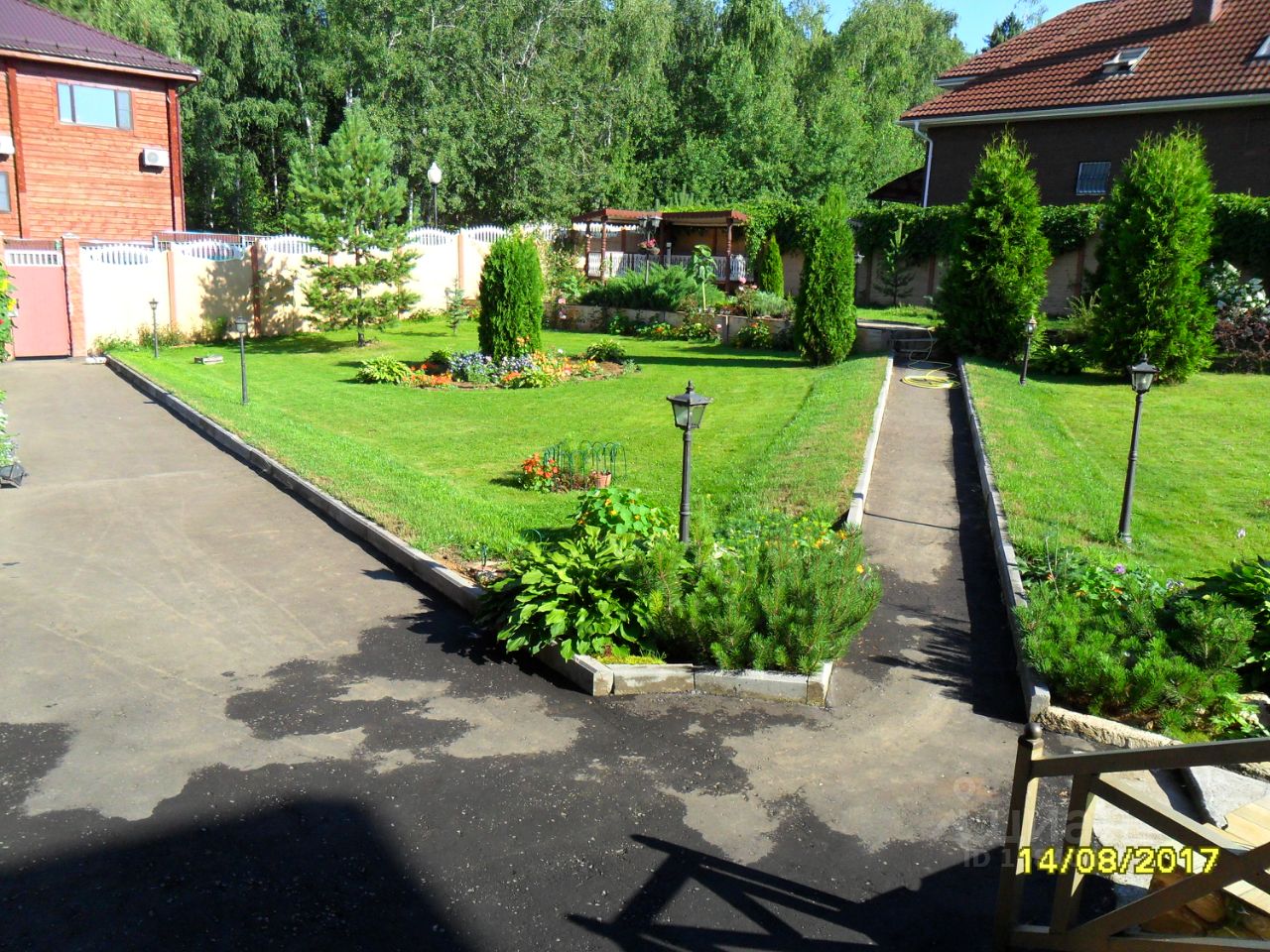 Участок 20 сот., английский газон, садовые и плодовые деревья, цветы. Главный въезд оборудован автоматическими воротами, въезды в гараж- тоже. Территория поселка охраняется ЧОП.