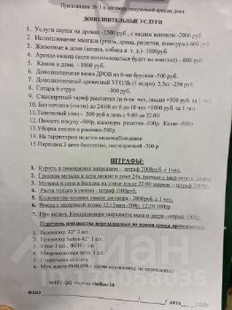 Мангал (дрова, уголь, шампуры, решетки)-дополнительно 600 р.В летнее время бассейн с 9:00 до 22:00 2000₽. Во время заселения арендатор вносит депозит арендодателю за ключи и имущество 4000 р.,который возвращается по окончании проживания. Заселение постояльцев начинается с 14:00 часов, выселение - до 12:00 часов. Выходные бронируются минимум на 2 дня.Пятница + суббота или Суббота+воскресенье В праздничные дни и суббота (если свободен за сутки) цены в календаре в сутки, свыше 6 чел. + 500 руб. за человека, максимум 8 человек. Животные ( кошка, собака и т.д.) +1000. Все расчеты как в описании без дополнительных платежей.