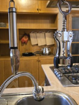 * Кухня: Полностью оборудована: холодильник, духовка, газовая плита, микроволновка, тостер, полный набор посуды для готовки и сервировки (кастрюли, сковородки, казан, бокалы, тарелки).