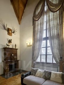 * Главный зал: Просторная зона отдыха с высоким потолком, окном "второй свет" и уютным мягким освещением. Большой раздвижной дубовый стол (до 16 персон), ТВ и Wi-Fi. Камин декоративный, не для топки.