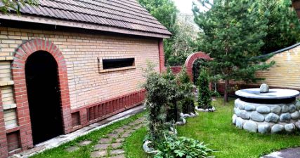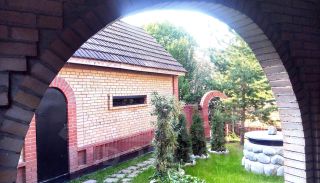 Ворота поселка закрываются пультом дистанционного управления, в доме сигнализация и кованные фигурные решетки, евроремонт, 13 помещений разного назначения (из них четыре спальни), бассейн, камин, бильярдная, пять плазменных панелей, кожаные диваны, на стенах современная живопись, полный комплект высококачественной бытовой и аудио-видео техники, центральная канализация, система фильтрации воды "обратный осмос", центральное водоснабжение, стомегабитный интернет, видеонаблюдение. При доме небольшой благоустроенный участок размером 5 соток, освоенный, по периметру обсажен туями и можжевельниками. выделяющими фитанциды (полезно для легких). На участке есть теннисный стол, кирпичный мангал, качели, беседка, песочница, скамейки, цветы. В стоимость аренды входит уникальная опция - неограниченное пользование личной беседкой на пруду и личным трехместным катамараном