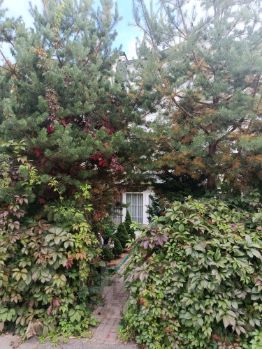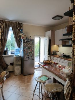 Участок 3 сотки (смотрите фото) разделен на придомовой и на зону для барбекю, выход на который осуществляется через кухню-гостиную .