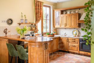 - дизайнерские интерьеры, мебель из массива дерева, теплые полы, кондиционеры