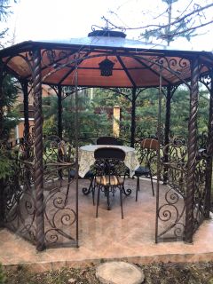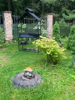 Участок: на территории есть мангал, кованая беседка, садовые качели, фонтан, скамейки среди лесного массива. Есть гараж на 1 машину, а также парковочная площадка перед гаражом.