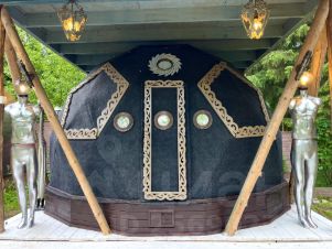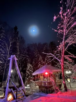 Дом в лесном посёлке, баня - юрта с домиком совы , купель на цепях, детский комплекс. на участке лес и плодовые и декоративные деревья . Гостевой дом с верандой , беседка, мангал. Основной дом - 4 спальни, 3 санузла, терраса, балкон. Лежаки, зонтики . На участке лесная речка, с рыбой. В поселке спортивная и детская площадки. Зимой заливается каток.За территорией 50 метров от ворот - большое озеро для купания. Все коммуникации центральные. Дом очень тёплый. Посёлок живет круглый год. Асфальт до дома