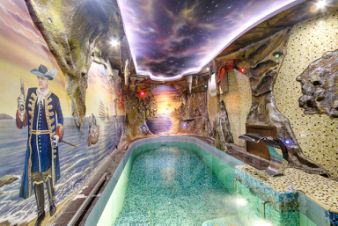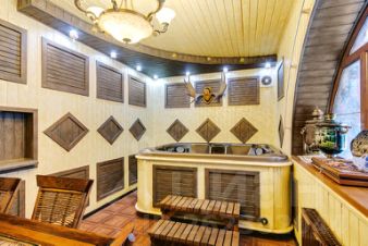 В отдельно стоящем здании площадью 300м2 располагается сауна, хамам, бассейн, комната отдыха и на втором этаже одна спальня.