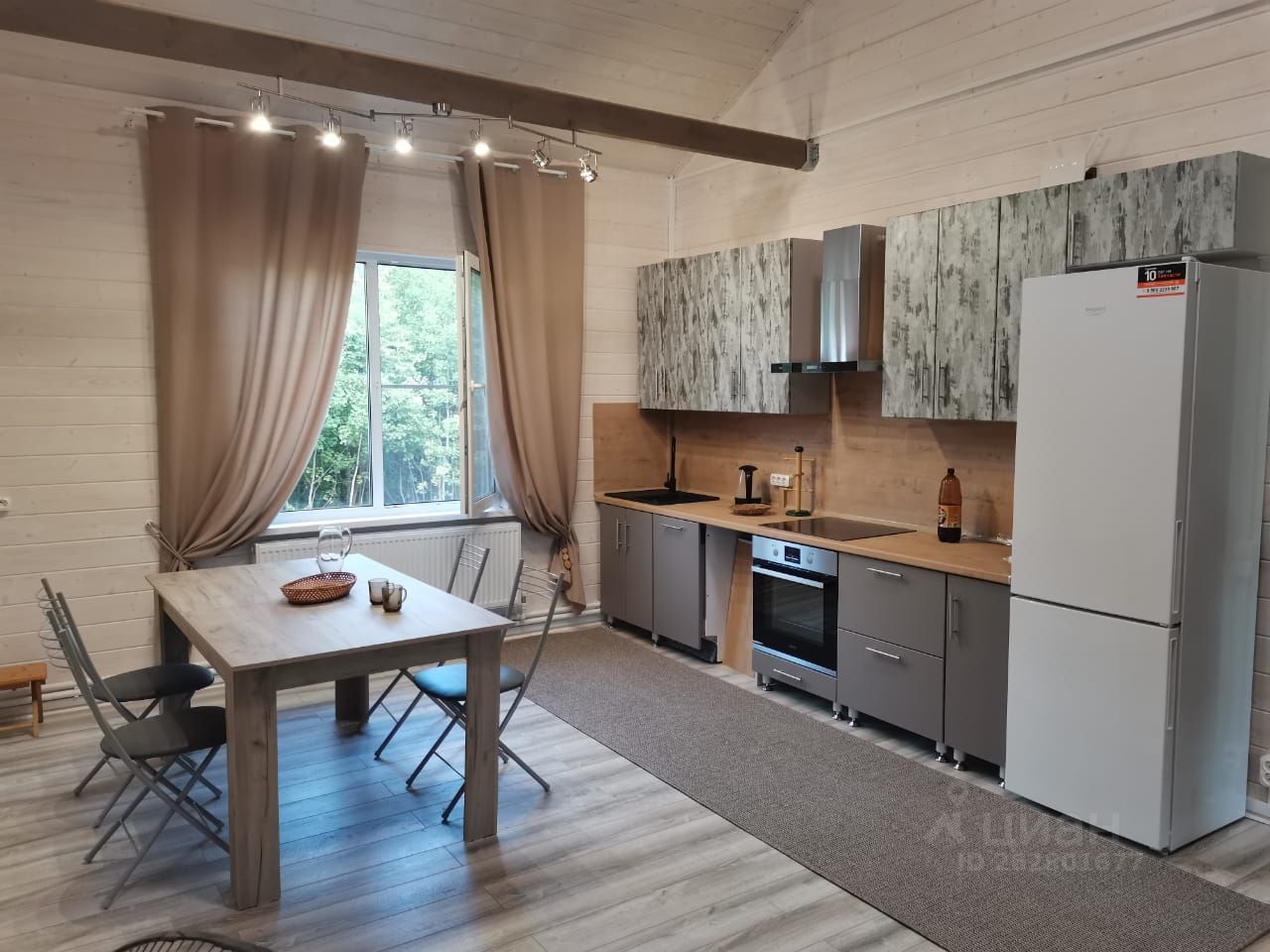Дом практически новый, очень тёплый, построенный в 2021 году, каркасный для круглогодичного проживания. 100 м2 + 20 м2 крыльцо. Три спальни (комнаты 15, 12 и 9 м2) , в гостиной второй свет, большое крыльцо 20 м2 с диваном и мебелью для утреннего кофе. Полная меблировка (двуспальные кровати 160х200, шкафы, тумбы, столы, стулья и пр.), вся необходимая техника (варочная панель, духовка, СВЧ, посудомоечная машина, стиральная машина, холодильник, ТВ). В середине дома большая гостиная/столовая/кухня (35 м2). Тёплый пол в прихожей и столовой, кондиционер. Участок: 14 соток, ровный и ухоженный. Напротив крыльца — крытая зона для приготовления шашлыка и барбекю. Участок находится на закрытой территории СНТ "Родник" со шлагбаумом (освещение, видеонаблюдение). Дружные и сплоченные соседи. Лес с грибами и ягодами, рядом с СНТ ~200 м пруд.