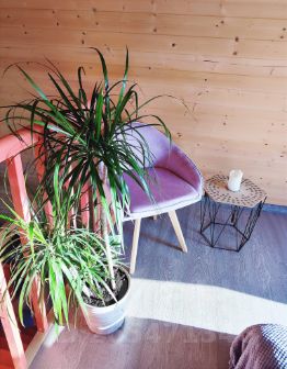 В доме 2 комнаты: на первом этаже отдельная изолированная и на втором этаже комната типа лофт (антресоль). В каждой комнате кровати 180 на 200 см. Гостиная совмещена с кухонной зоной, диван в гостиной раскладывается. Постельное белье предоставляется, в каждой комнате темные шторы для комфортного сна.