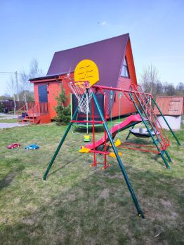 Доя самых маленьких гостей в доме есть кровать-манеж, стульчик для кормления, игрушки, раскраски и карандаши. На улице детская площадка и батут.